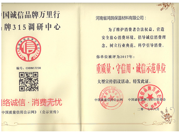 ”用戶至上"是公司一貫的宗旨。嚴格而行之有效的售前、售后服務,是河南省鴻鵠保溫材料有限公司信心的保證。